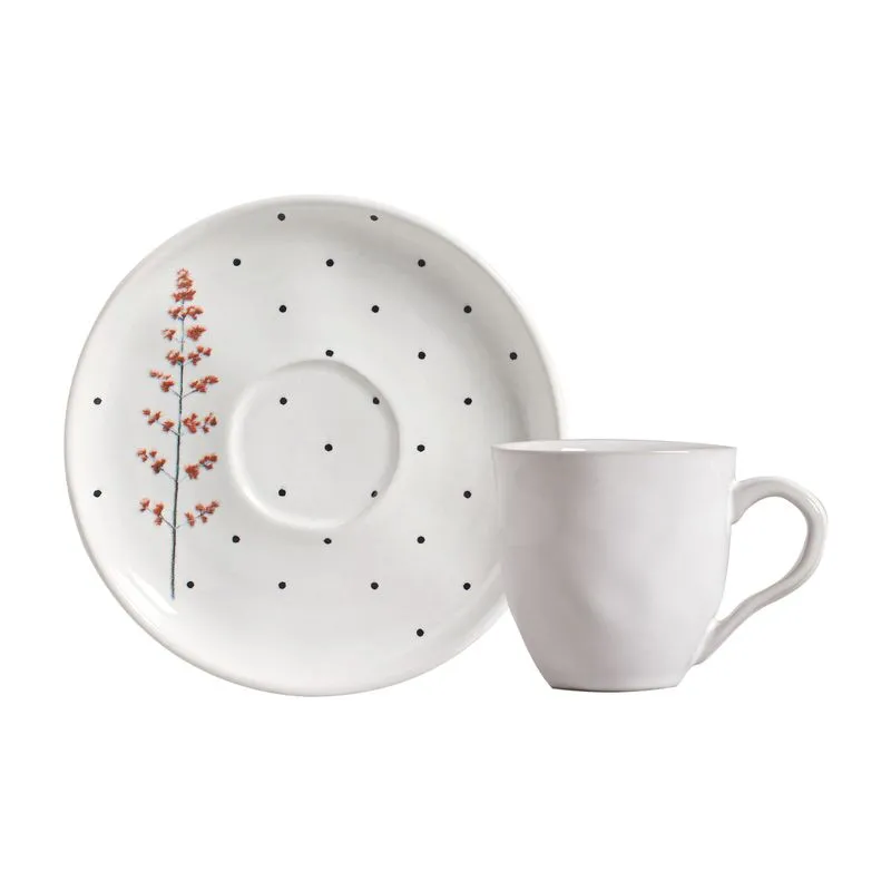 Cor: branco com poá preto e flores coloridas